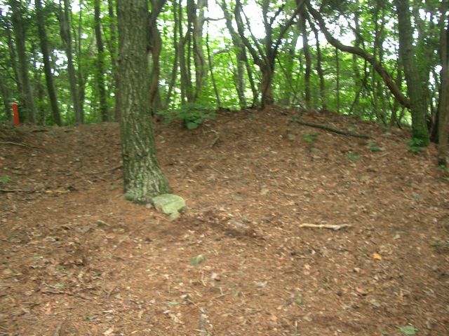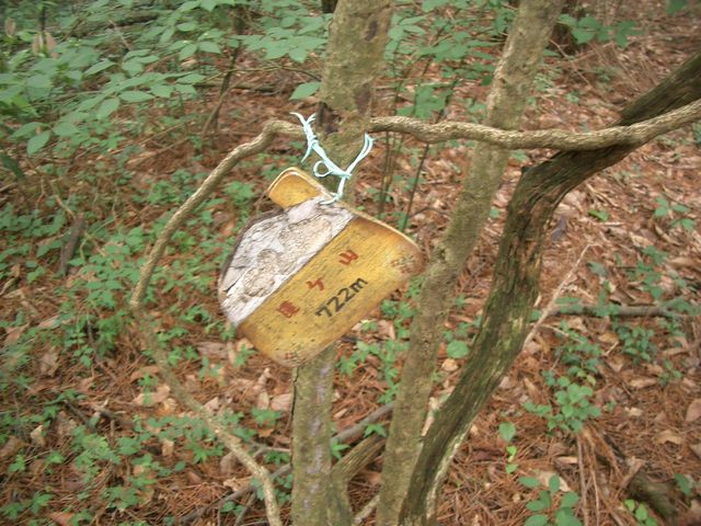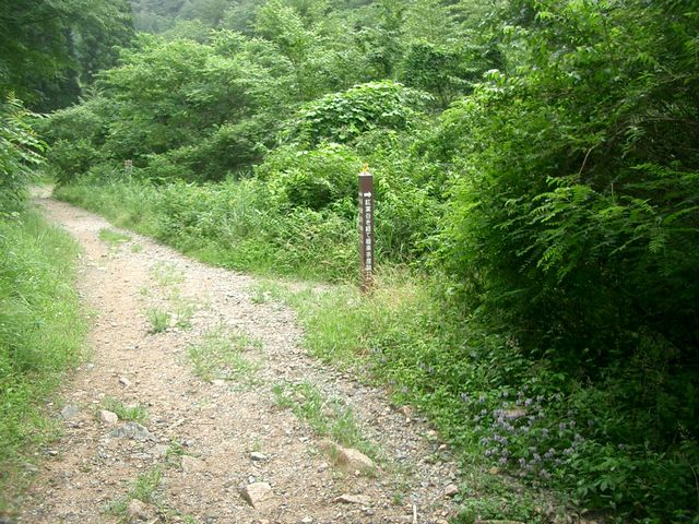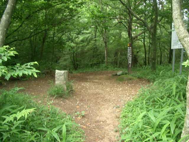 2週間のブランクか、それとも暑さのせいか、息が弾み、しんどい。休み休み登って行く。頂上近辺の平坦な道に出てほっとする。左手方向、風呂谷からの道と合流すると頂上はもうすぐそこ。