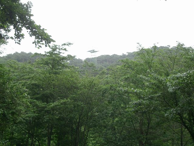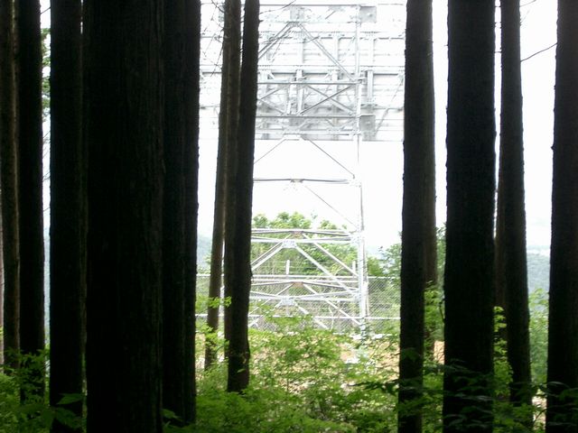一旦、左手真っ直ぐの道を進んで見ると前方に無線反射板が見えてきた。どうやらこの道は無線反射板施設の保守道路のようだ。施設がどこの会社のものか興味があり傍まで行ってみたかったが、寄り道する時間が勿体無い。来た道を戻りテープのあった右手の道に進む。