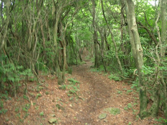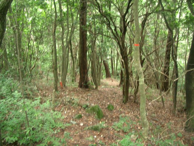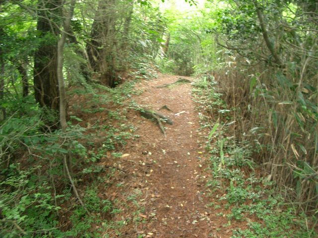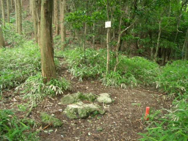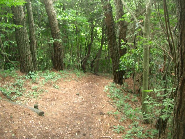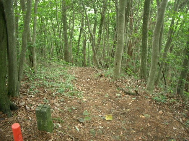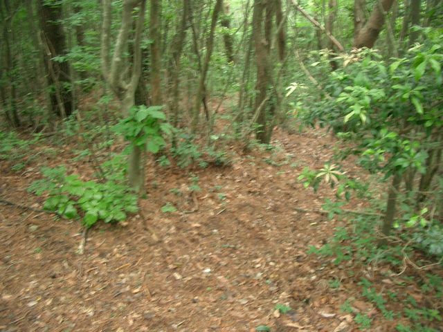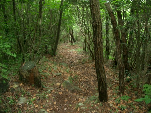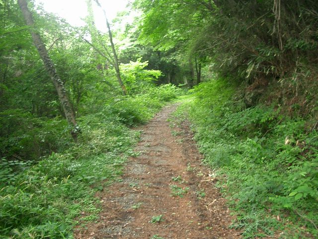 周囲の雰囲気からして峠は近く、進んでいる方向は東の方向であり、ずっと登っているので、いずれ峠道にでられるはずだ。心配することはなかろうとそのまま進み目の前に見える急な斜面を、立ち木を頼りに登り切ると、左右に延びる一本の道に飛び出した。