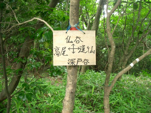 すぐに道は急坂下りとなる。急坂を下ること10数分で仏谷峠に着いた。ここから、真っ直ぐ高尾山へと登って行く。