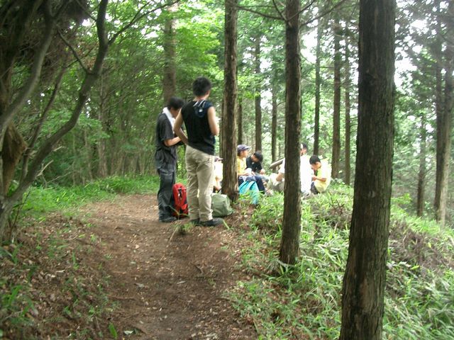 道を一旦下り、次に小ピークを目指して登り返す。ピークを登り切ると、その後道は緩やかとなり、あっという間に湯槽谷からの下り道に合流した。ここで、湯槽谷山から下って来たボーイスカウトの子供達と一緒になる。この先、子供達と抜きつ抜かれつして進むことになる。