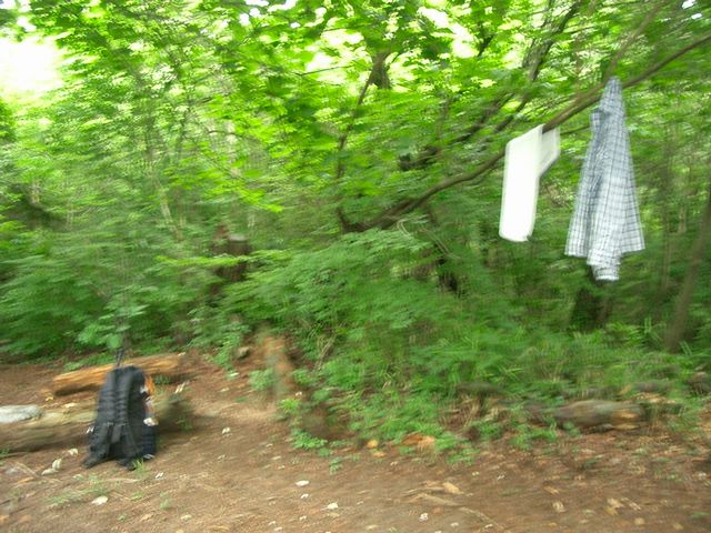 汗に濡れたタオルもシャツも雨降りで全然乾かない。 |