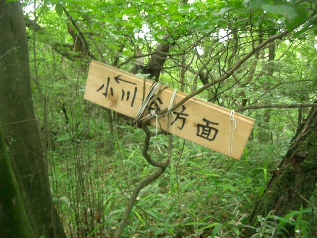 時間は充分ある。既にシャツは噴出す汗でずぶ濡れ状態。豪雨でなければ、この程度の雨は気にはならぬ。計画どおり小川谷を下ることにする。横谷への分岐に着いた時点で再考すれば良い。