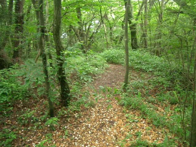 | 頂上真近の平坦な道。逢ケ山の頂上周辺は平坦な所だ。 |