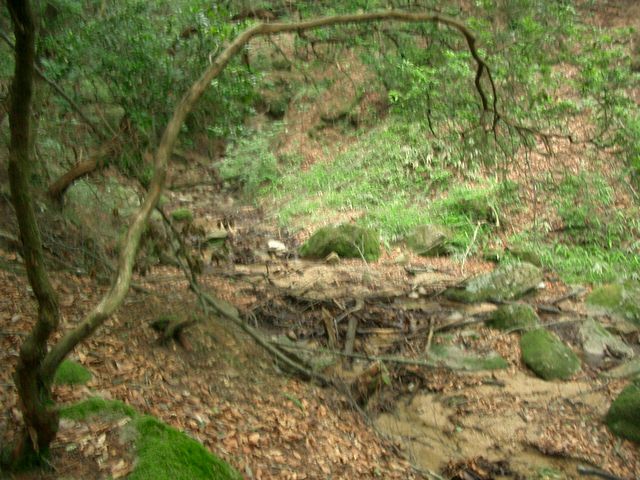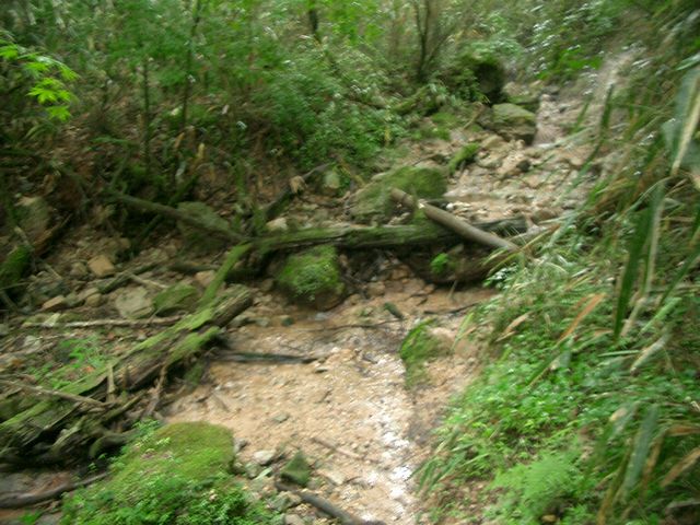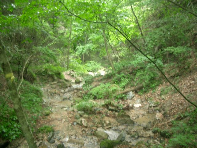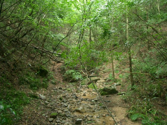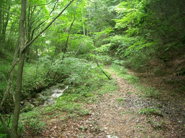 梅雨時ではあるが沢に流れる水はそれほどでもなく無く歩行に全く支障は無い。林の中へと進み辺りは鬱蒼としてくる。