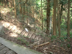 | 階段途中から後方を見下ろす。急な階段で一気に登る。 |