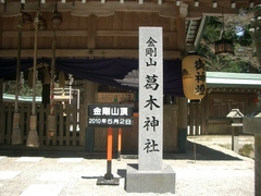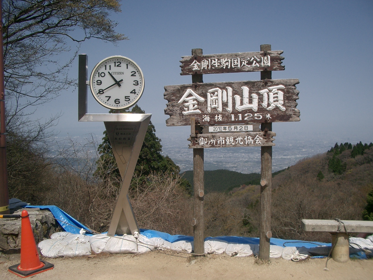 | 山頂は葛木神社境内にあり立ち入り困難なため、こちらに山頂碑が設けてある。お昼にはまだ時間が早いが弁当を食べることにした。 |