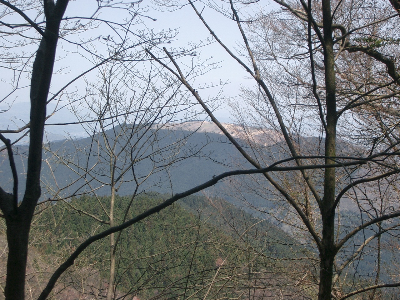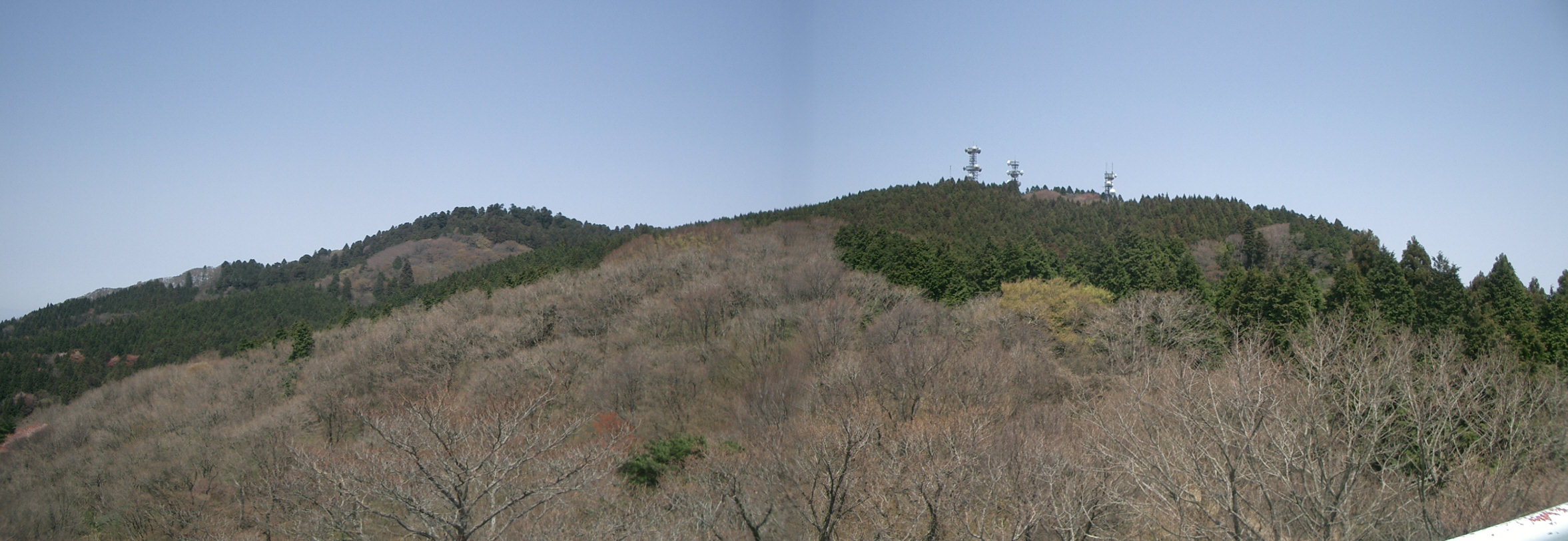 | 北方向の眺め。奥側のピークが金剛山、手前右のアンテナ塔のあるピークは湧出岳。 |