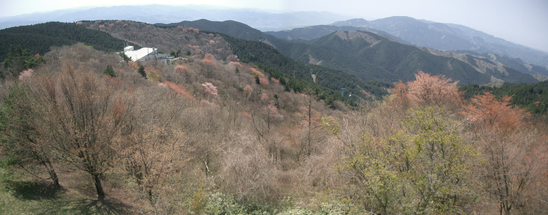 | 西方向眼下には香楠荘やロープウェーが見える。ロープウェーの駅を確かめたくて駅に向かう。 |