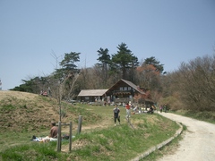 | 山頂碑のある国見城跡広場。たくさんのハイカーが憩っていた。 |