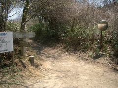 | 千早城跡への道が右に分岐する。ここは真っ直ぐに進む。 |