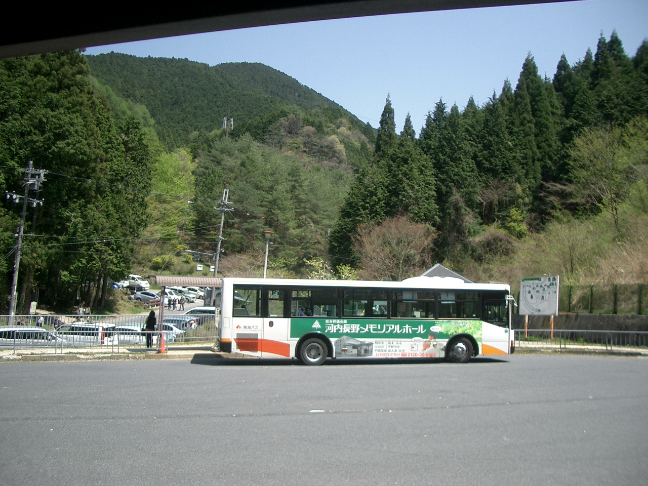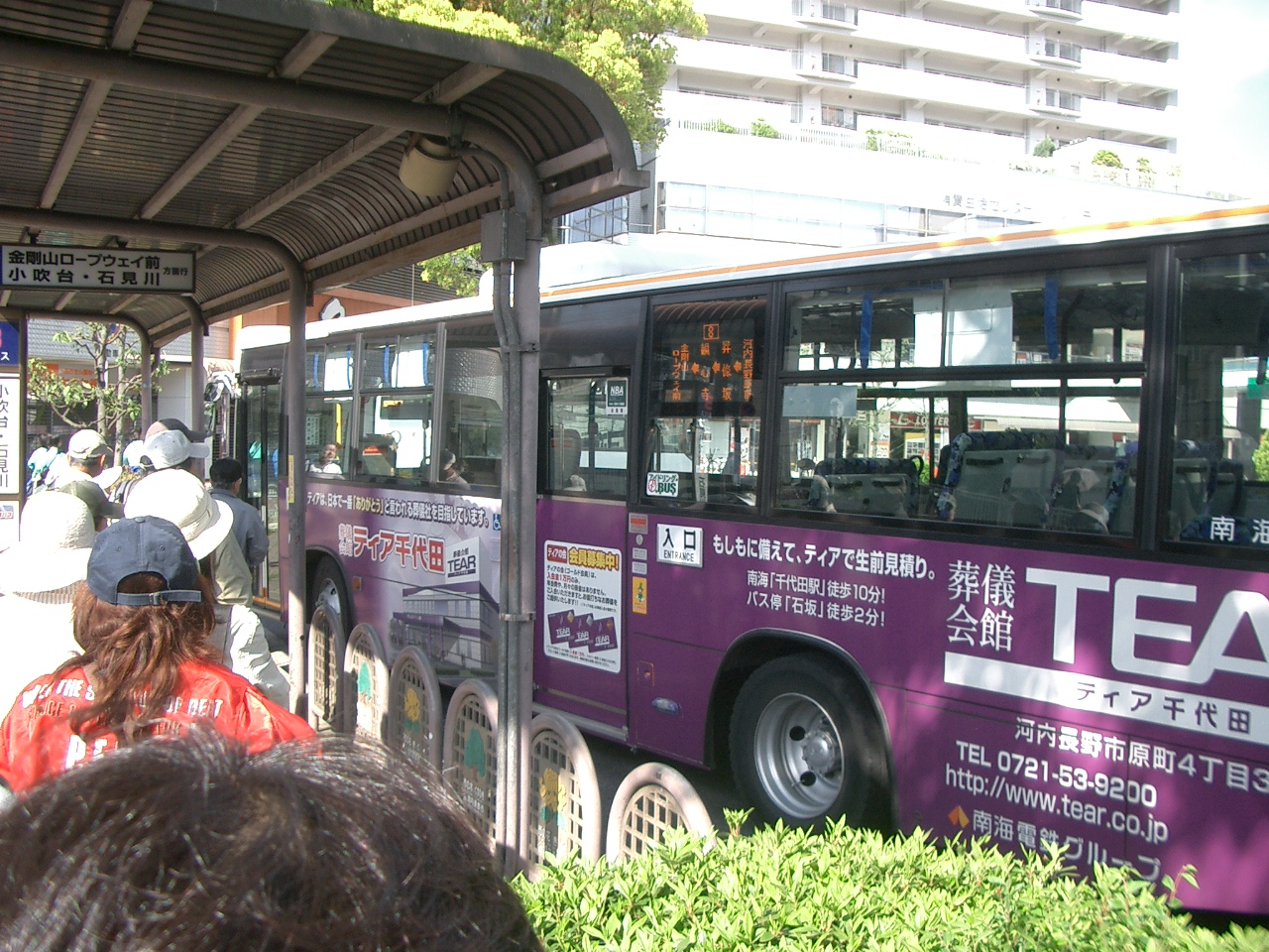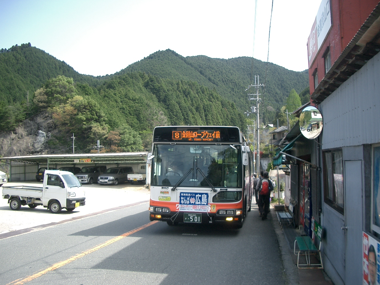 満員のバスだが、幸いにして座ることが出来た。金剛登山口にてバスを降りる。 |