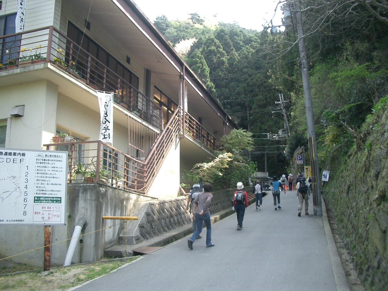 ロープウェーの上部駅に到着。時間も早いのでロープウエーは使わず徒歩で下ることにする。ここから香楠荘への道を登って行く。 |