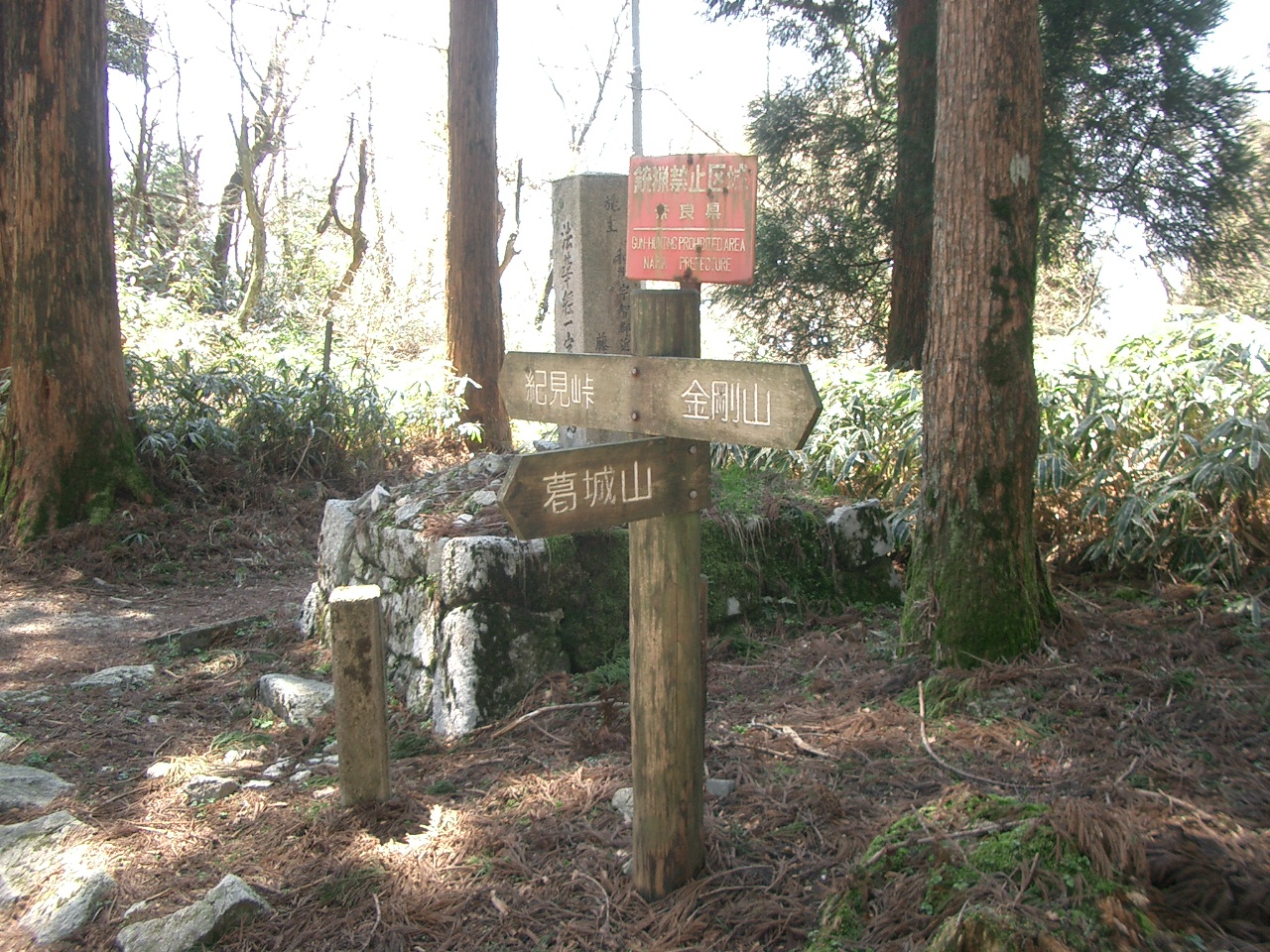 ここの分岐は真っ直ぐに紀見峠方向に進む。 |