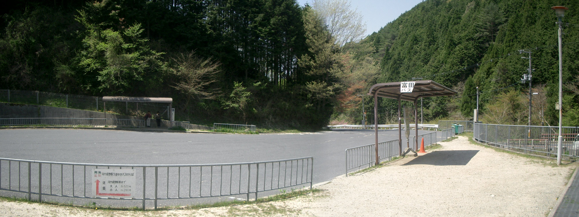 | ここが金剛山ロープウェー前バス停。バスの転回場を兼ねた大きな広場だ。 |