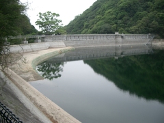 | ダム周遊路からダム湖を見る。随分と水量が少ない。 |