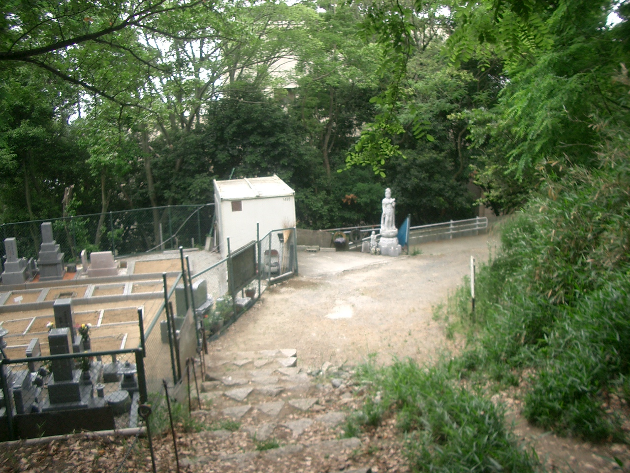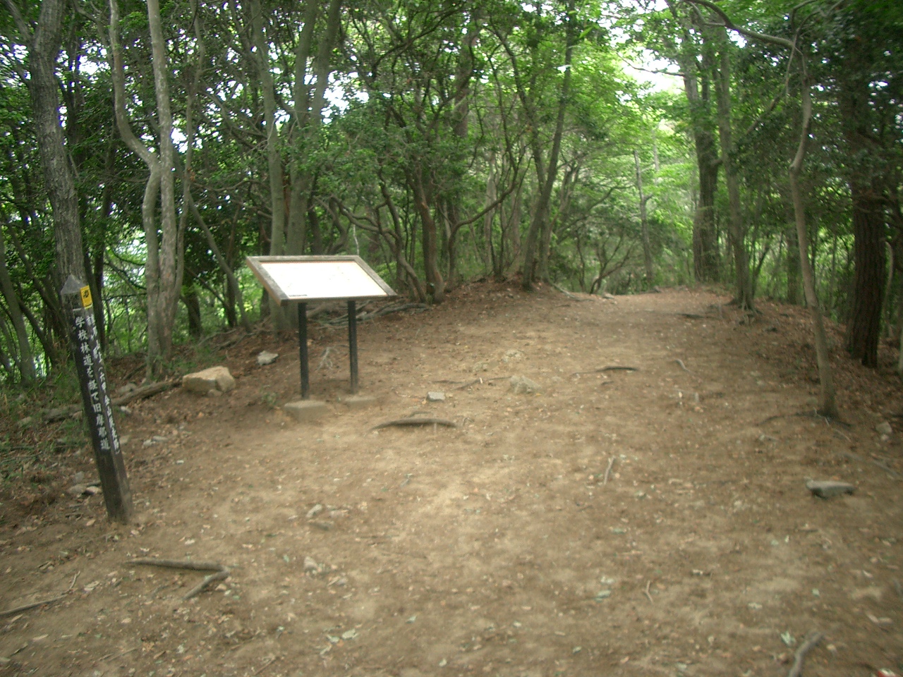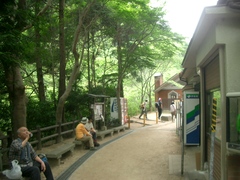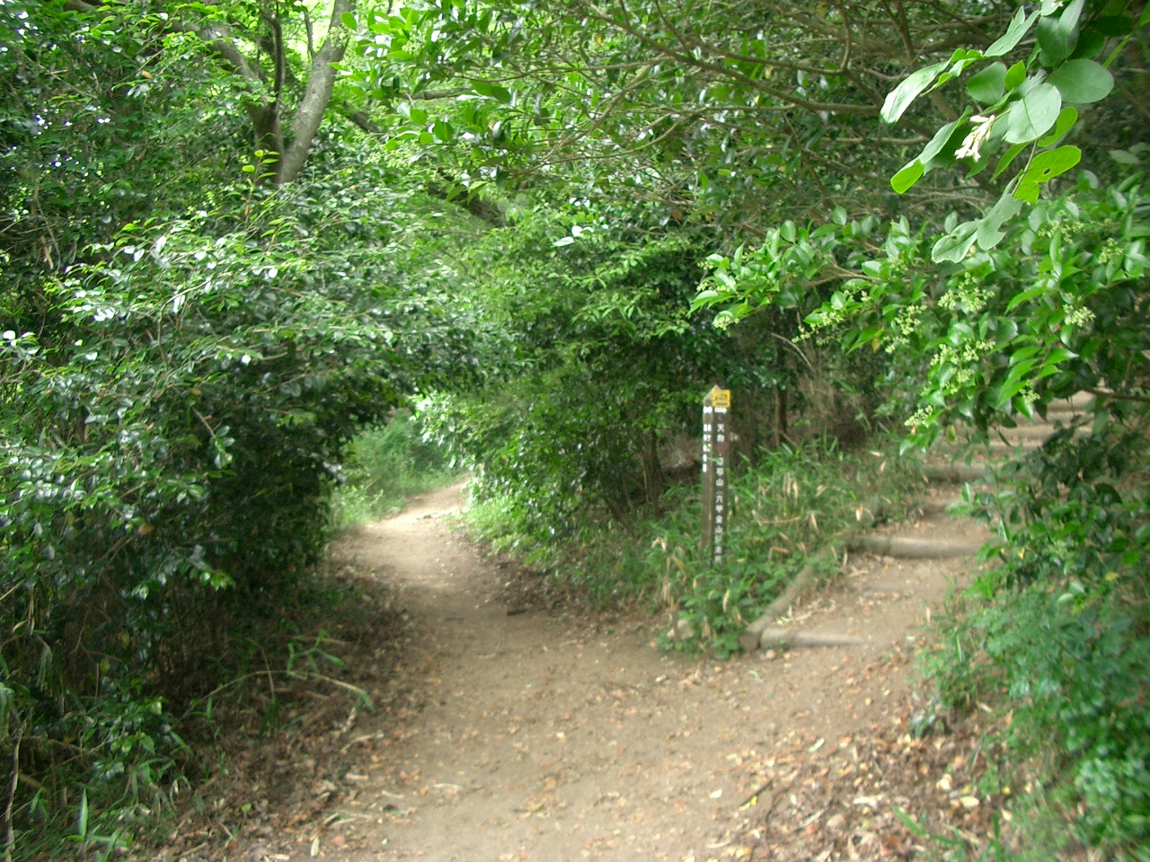 | 頂上から急坂を下るとここに降りてきた。左に行くとケーブル駅、右に行くと神戸高校だ。左に進む。 |