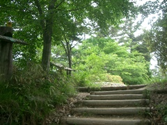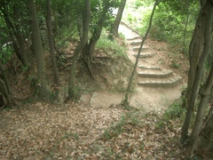 この先、右の階段を登る。いきなりの急階段でいつもげんなりする。 |