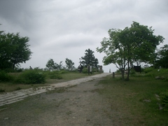 今日は、初めて五鬼城山公園頂上の展望台に登って見た。先の道を左に下って行く。 |