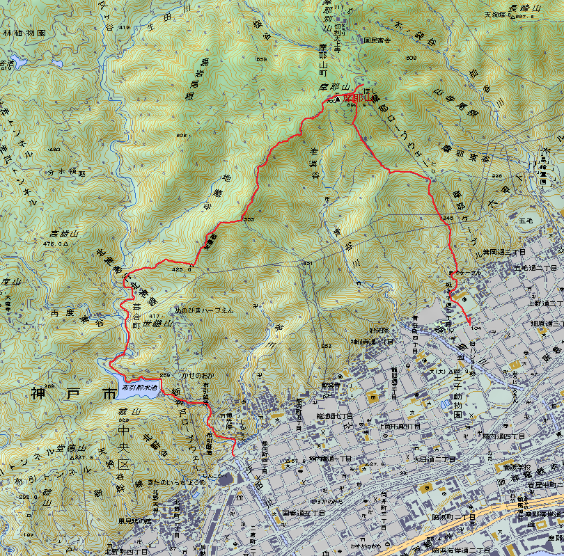 天狗道で摩耶山に登り、上野道で下ってきた。