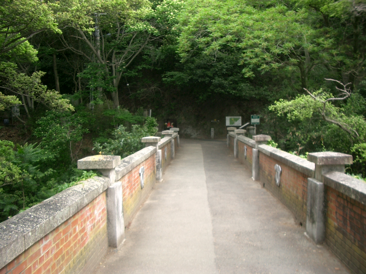谷沿いに道を下ってくると神戸高校の裏側に出てくる。道なりに右へと進みバス停を目指す。 |