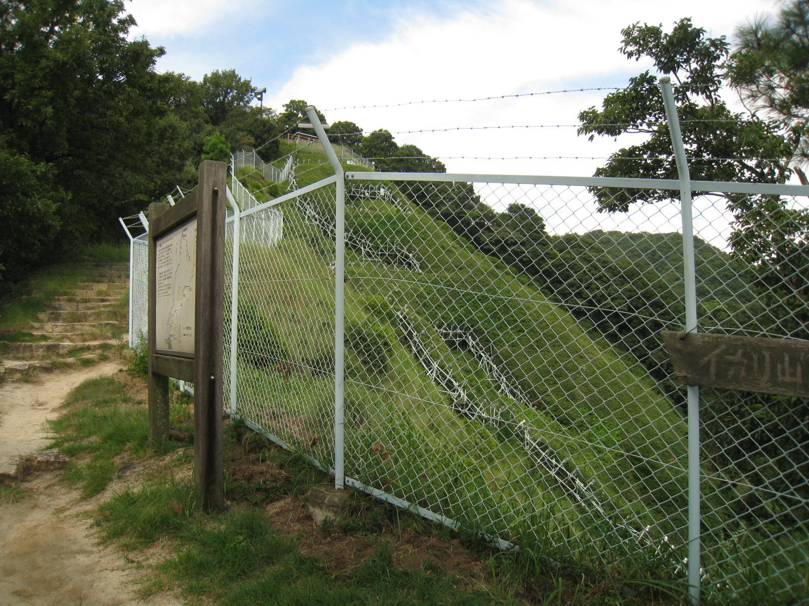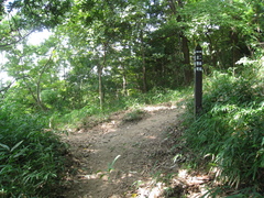 ここで少し休憩の後、来た道を戻り、山道を登ります。結構、急登な道が続きます。30分程登ると北野異人館街からの道に合流します。