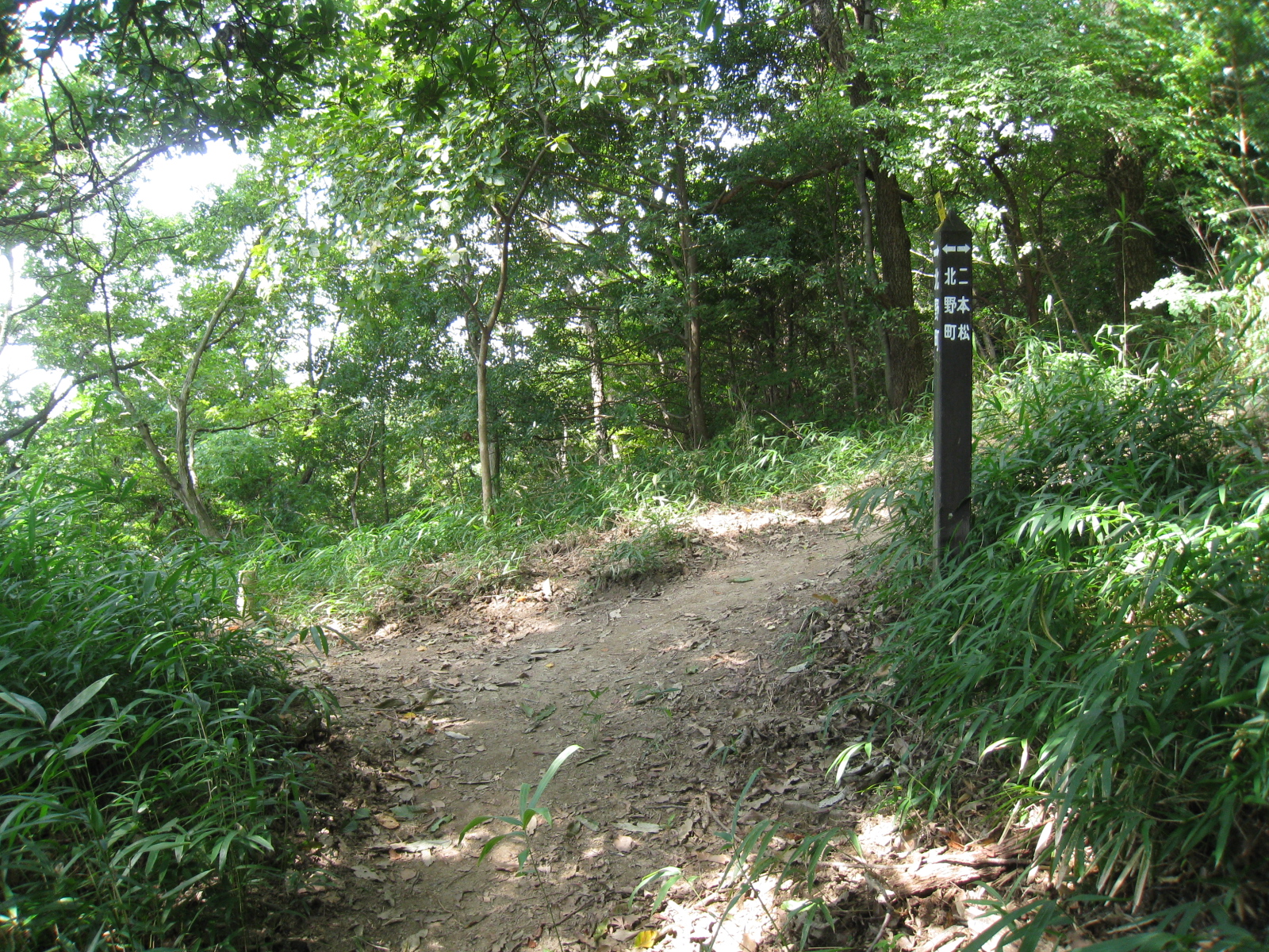 | 右が二本松林道、左が市章山方向となります。左に折れて市章山を目指します。 |
