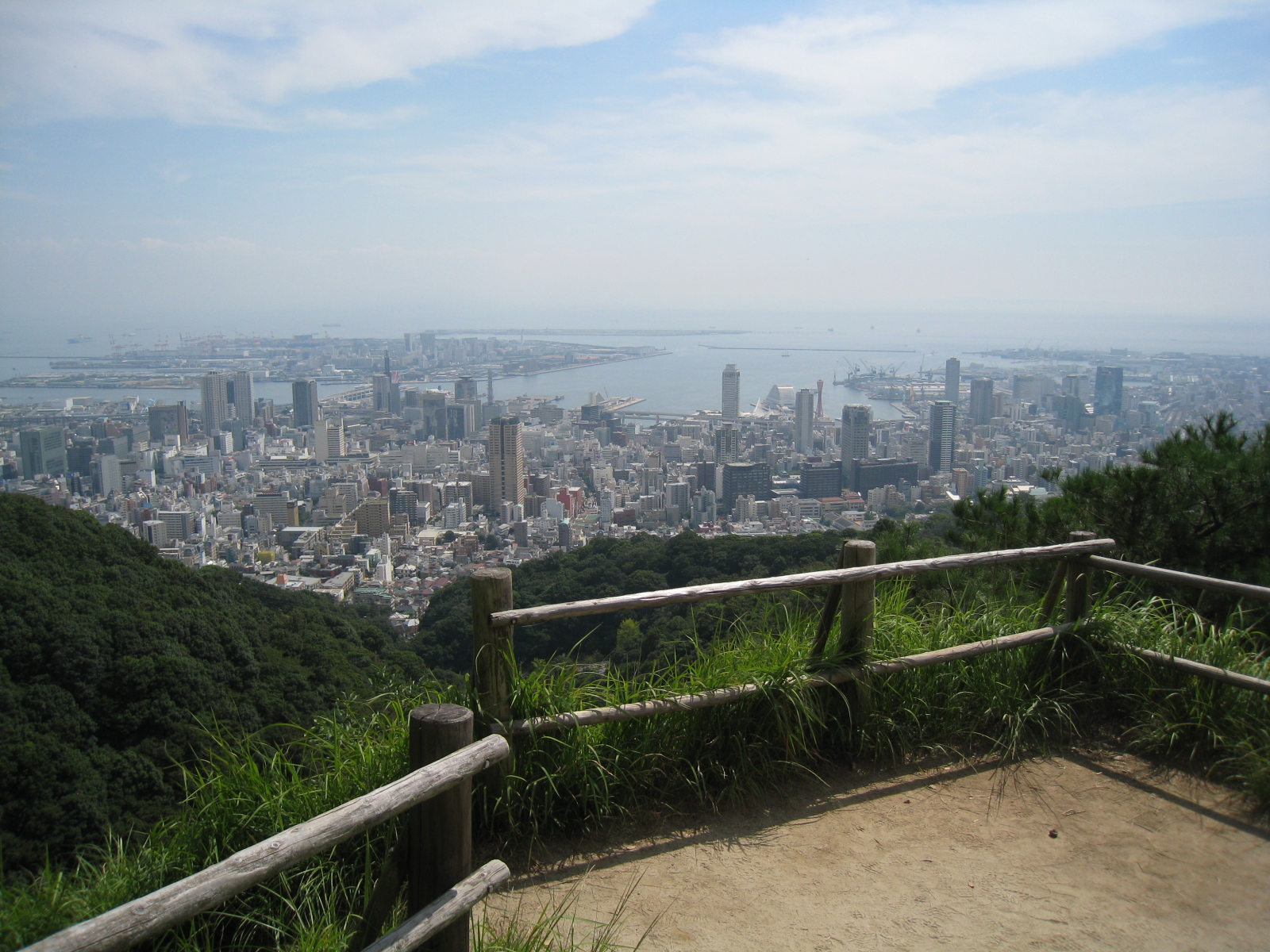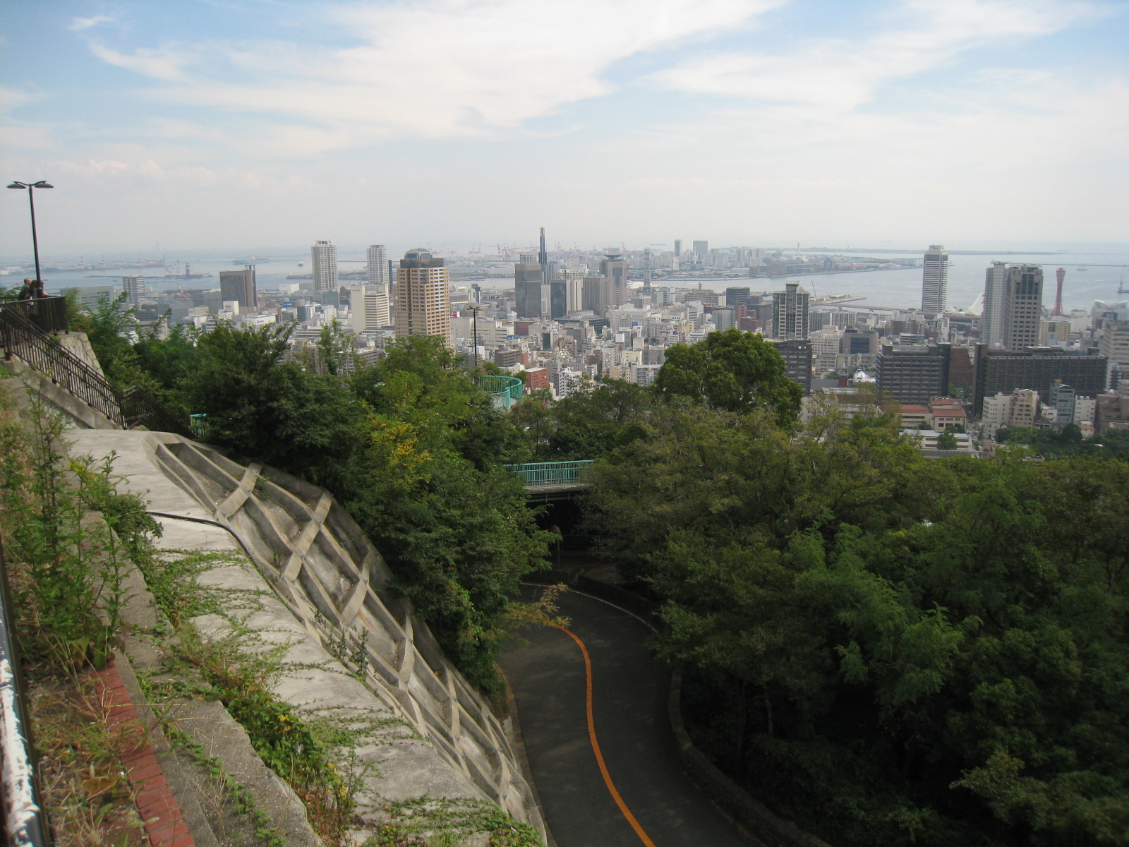 新神戸駅裏のハイキング道に入ってすぐに、異人館街に抜ける背山散策路があります。最近整備されて歩きやすい道です。30分程で、港みはらし台に着きます。