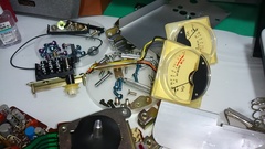 メータとネジ類。昔のオーディオ装置はネジの種類も数も多くて元に戻すのが大変です。 |